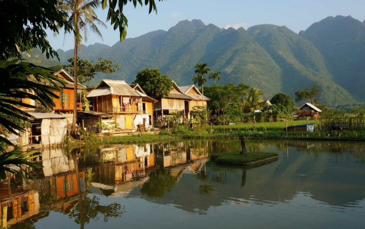 Traversée de paysages de rizières et de montagnes, puis passage en bac local, expérience simple et authentique.