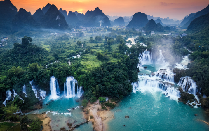 Départ pour les chutes de Ban Gioc, situées à la frontière entre le Vietnam et la Chine. Considérées comme les plus belles chutes du pays, elles offrent un spectacle naturel impressionnant, au cœur d’un décor montagneux exceptionnel.