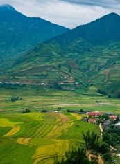 Passage par le col de Khau Pha, surnommé les « cornes célestes », culminant à 1 580 m. Déjeuner chez l’habitant ou dans un restaurant local, puis poursuite de la promenade sur un chemin en balcon jusqu’au village de La Pan Tan, considéré comme la capitale des rizières en terrasses du Vietnam. En fin d’après-midi, route vers Mu Cang Chai. Nuit chez l’habitant, au cœur d’un environnement naturel exceptionnel de ce circuit Vietnam et Laos.