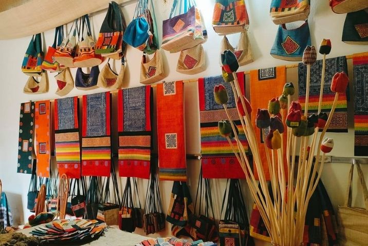Avant de quitter Lung Tam, un arrêt à la boutique de la coopérative est incontournable. Vous y trouverez une large sélection de créations artisanales : écharpes, sacs, vêtements, chemins de table ou objets décoratifs, tous fabriqués à la main dans le village. Acheter un souvenir sur place, c’est soutenir directement les artisanes et repartir avec une pièce authentique, porteuse de l’histoire et du savoir-faire de cette destination.